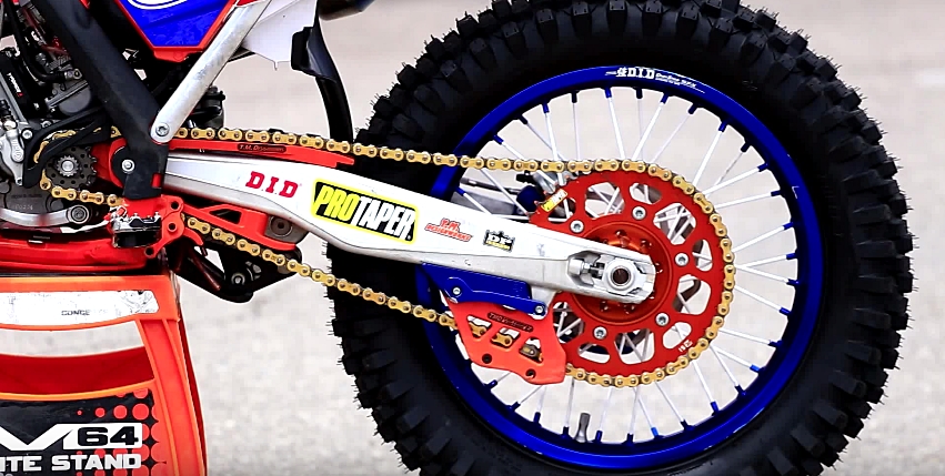Motocykl wyposażony jest również w pomarańczową osłonę silnika oraz osłonę tylnej tarczy hamulcowej. Dziwi jednak fakt, że Webb nie postawił na karbonową osłonę dyfuzora, o którego uszkodzenie nie trudno na skalnych sekcjach tras Endurocross.
