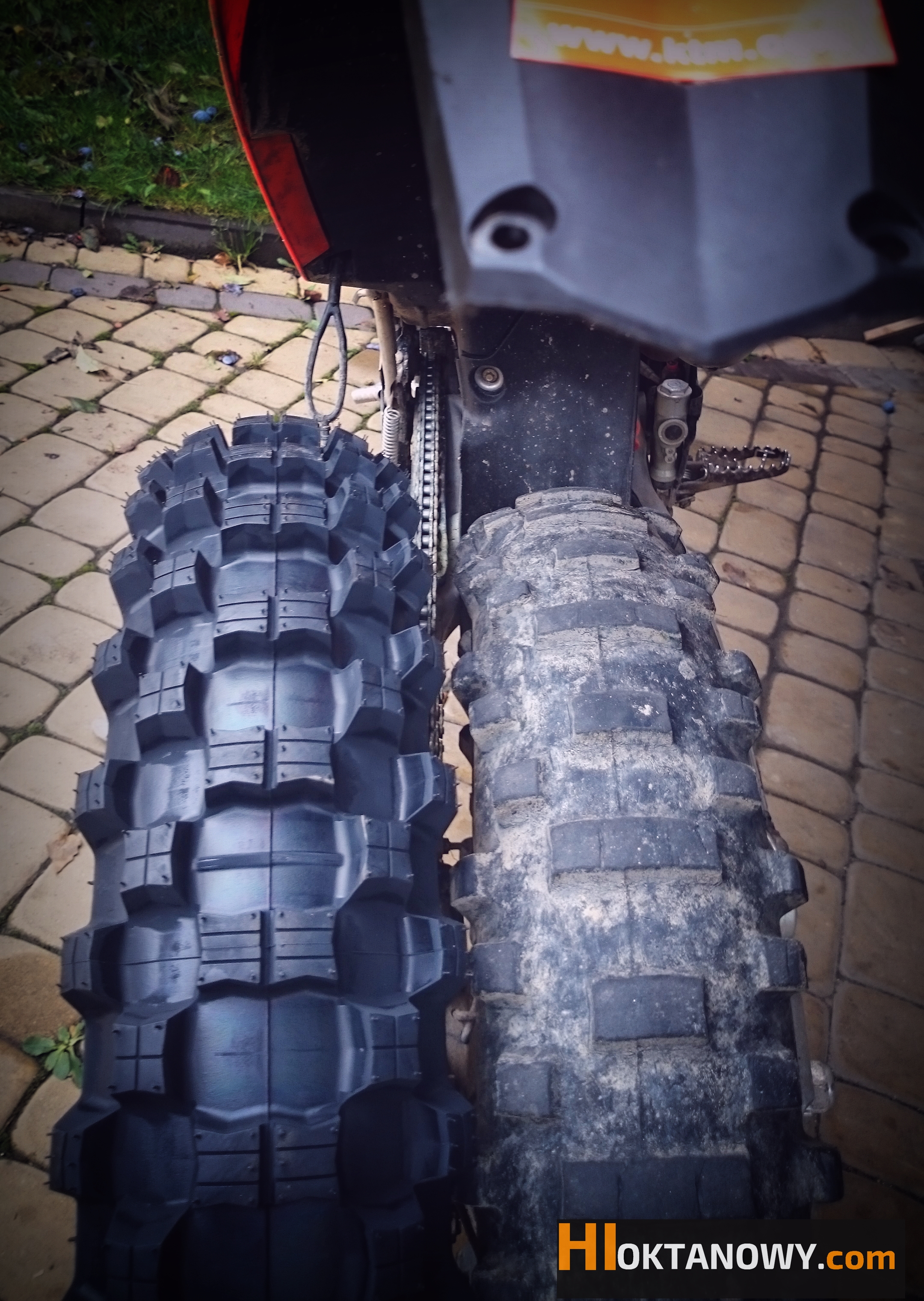 Tak więc nie tracąc czasu, po ostatnim tripie przystąpiłem do poszukiwań nowej opony. Jako że jestem raczej osobą, która nie lubi zmian, to początkowo pomyślałem, że pozostanę przy Six Daysie. Co jak co, ale trzeba mu przyznać, że kleił się naprawdę wybitnie. Niestety niski bieżnik szybko stracił swoje właściwości, co sprawiło, że rozejrzałem się za innymi gumami i tak trafiłem na MICHELIN Enduro Competition, a następnie na MICHELIN Cross Comp. S12 XC 140/80-18 z 18-milimetrowymi klockami bieżnika.