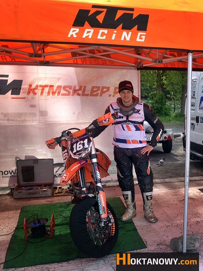 W sezonie 2015 chyba po raz pierwszy, poza rywalizacją w zmaganiach MX/Enduro, śledziłem także poczynania chłopaków w Mistrzostwach Polski Supermoto. Jednym z czołowych zawodników polskiej serii jest Jędrzej Żurlaski. Dosiadający motocykla KTM 450 SMR Żuralski w sezonie 2015 startował w barwach sponsorskiego zespołu z Olsztyna – KTMSKLEP.PL i zmagania zakończył z tytułem wicemistrzowskim. Poza startami na polskiej ziemi Jędrek startował także w rundzie Mistrzostw Europy oraz w całej serii Mistrzostw Litwy, w których…. zgarnął tytuł mistrzowski!!! Doskonała postawa Żuralskiego na krajowych i zagranicznych torach zaowocowała jeszcze jednym, mianowicie powołaniem do polskiej kadry na SM of Nations, z którą Żuralski po raz pierwszy w historii wywalczył awans do finałów! Jak więc widzicie Jędrek to naprawdę WYSOKOOKTANOWY, a zarazem mega sympatyczny gość, z którym po prostu musiałem się spotkać, by nie tylko lepiej przyjrzeć się jego bryce – 450 SMR – ale przede wszystkim, by uciąć sobie pogawędkę!