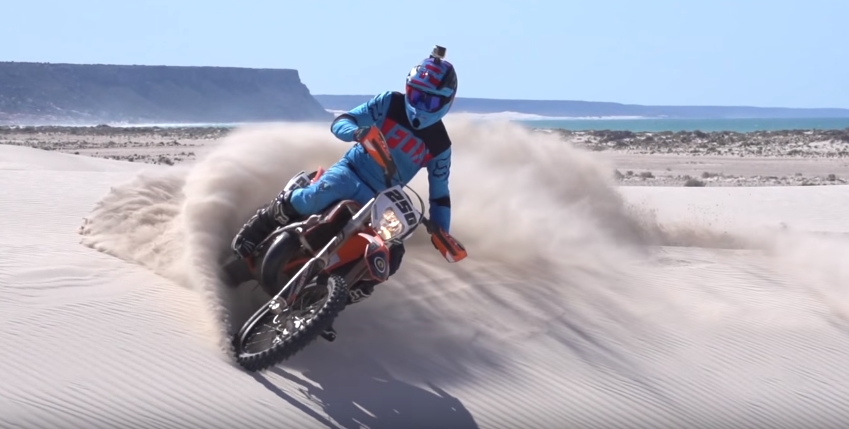 W My Australia poza pięknymi ujęciami z podróży samochodem, nie brakuje również dynamicznych ujęć z upalania 250-tki EXC, hasających kangurów, jaszczurek, a także kumpli, w tym jednego w świetnym żółtym Holdemie i drugiego w kozackim (również żółtym) pick-up’ie.