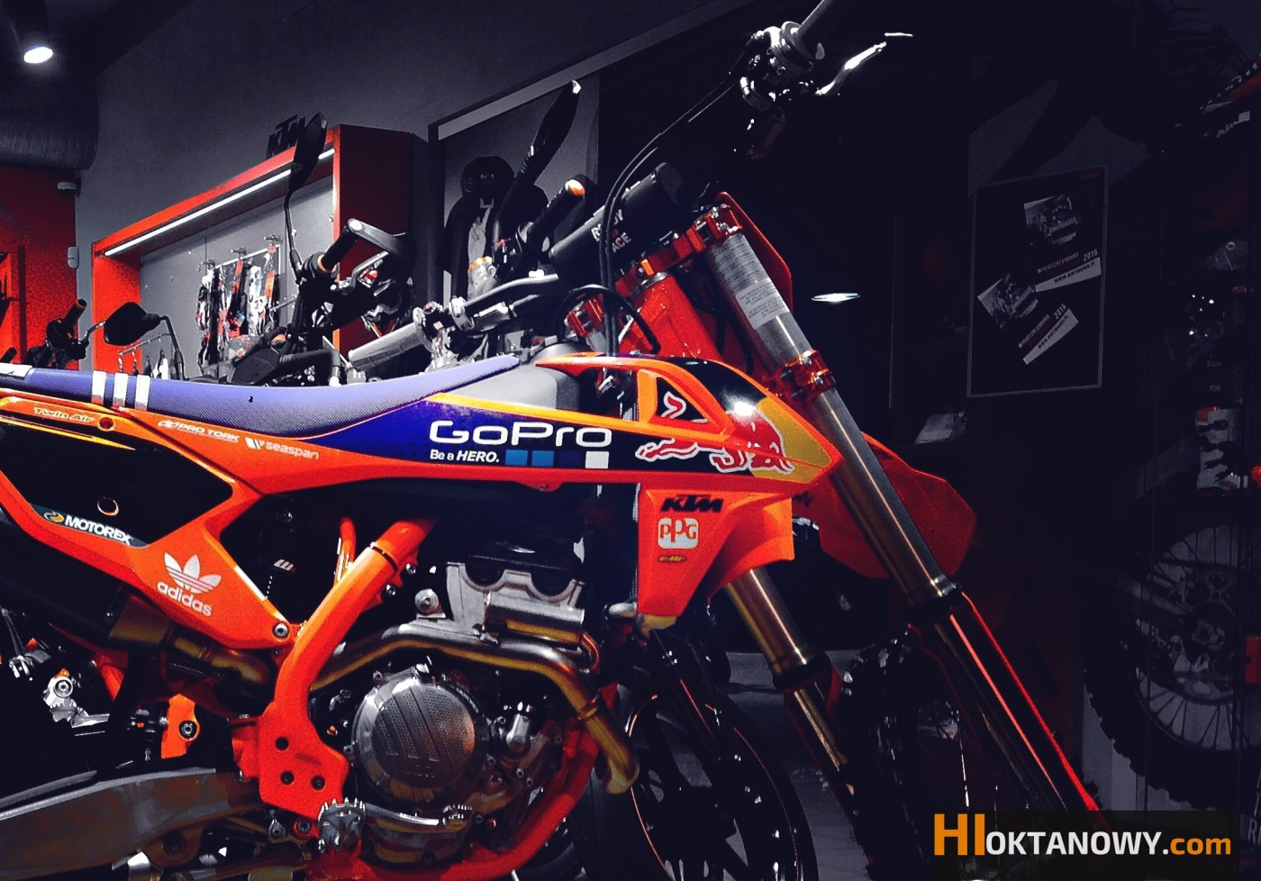 Dokładnie tydzień temu progi jednego z polskich, autoryzowanych dealerów KTM, mianowicie salonu KTM Wojciechowicz w Olsztynie, przekroczyła, a w zasadzie przejechała fura żywcem wyrwana z serii AMA Supercross, czyli KTM 250 SX-F w specyfikacji Factory Edition. Pomarańcza totalnie odjechana i porządnie dopieszczona asortymentem z najwyższej półki. Bryka READY TO RACE jeszcze bardziej!