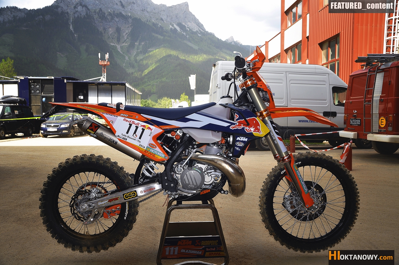 Jednym z głośniejszych tematów przed tegorocznym Erzbergiem był oczywiście fakt, że do walki z Żelazną Góra znów stanie jej 5-krotny pogromca – Tadek Błażusiak. Dla pochodzącego z Nowego Targu ridera start w Erzberg Rodeo 2016 miał być pierwszym, oficjalnym startem na… lżejszym, szybszym, mocniejszym – po prostu zupełnie nowym KTM 300 EXC z gamy modelowej 2017, któremu w Eisenerz miałem okazję przyjrzeć się z bliska – naprawdę bliska.
